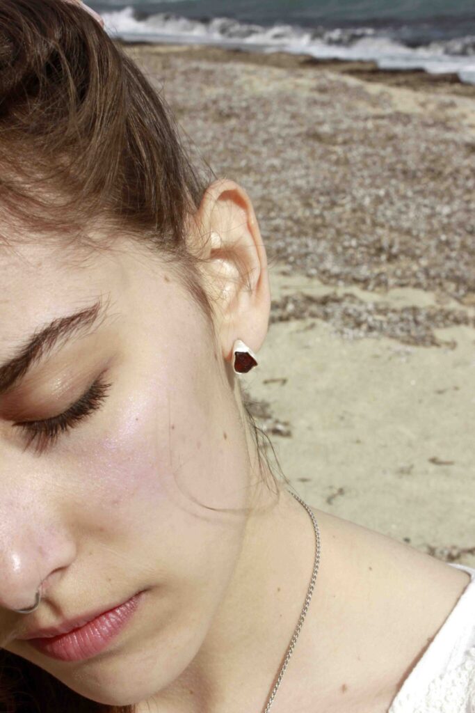 £125.00Stud earrings with rough garnet stones. Perfect for your everyday outfits. The earrings are part of the Tethys collection. Each piece is one…