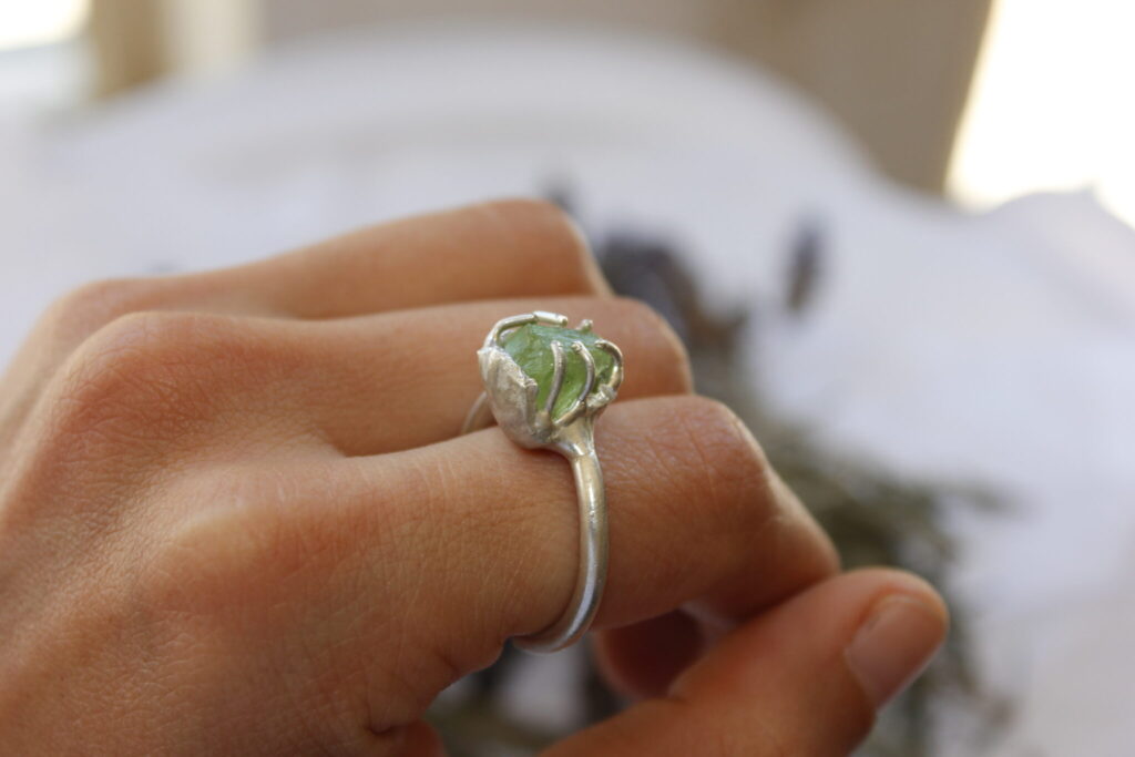 Peridot Organic Silver Ring