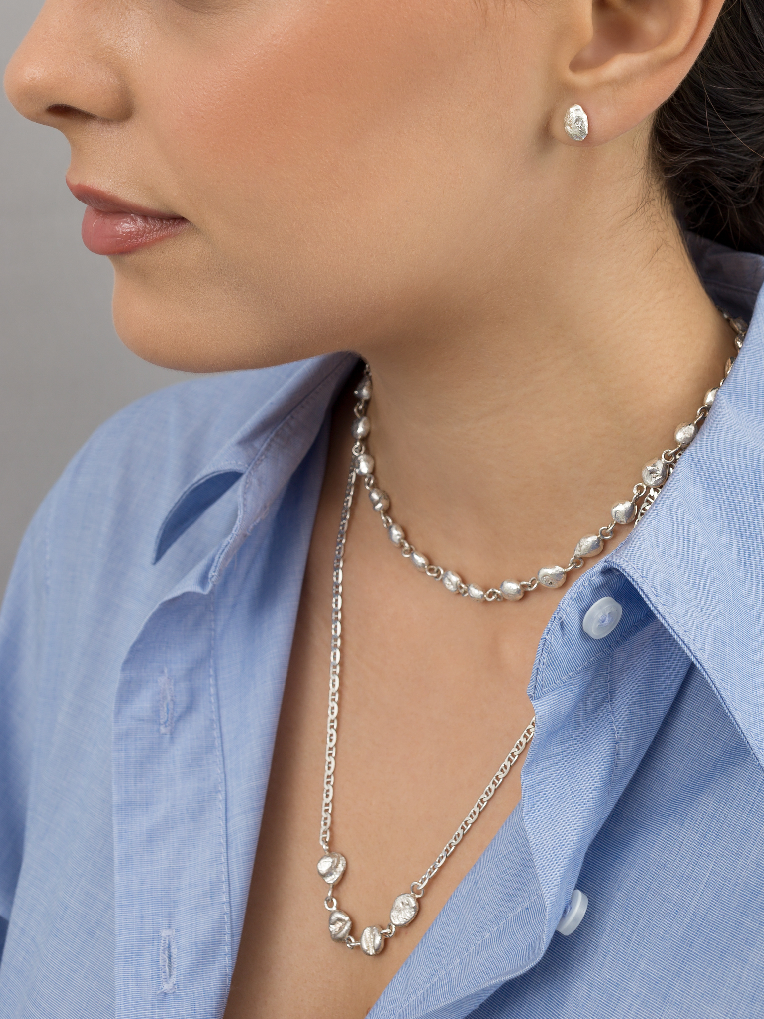 The small organic balls are made from our silver scrap, which means they are 100% recycled and solid.